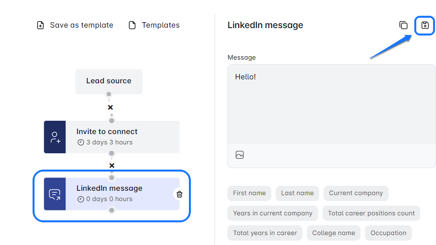 Save time with the My Marketing Pass’s step copy-and-paste feature! Easily duplicate steps like Invites, Messages, or Emails, and customize them in sequence. Save key steps as templates in the Template Library for future campaigns. Streamline your workflow and boost efficiency! 🚀 Need help? We’re here for you.